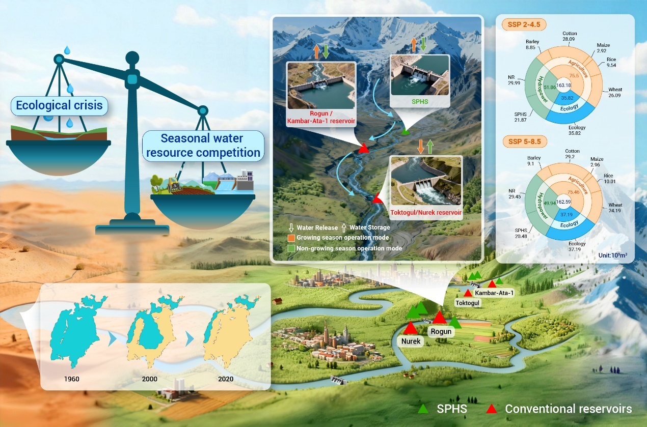 针对这一问题,中国科学院新疆生态与地理研究所段伟利研究员团队,提出基于水–粮食–能源–环境纽带的水资源协同优化策略。研究创新性地将传统水库与季节性抽水蓄能系统结合,实现跨境水资源在粮食安全、生态水位与清洁水电之间的动态平衡。