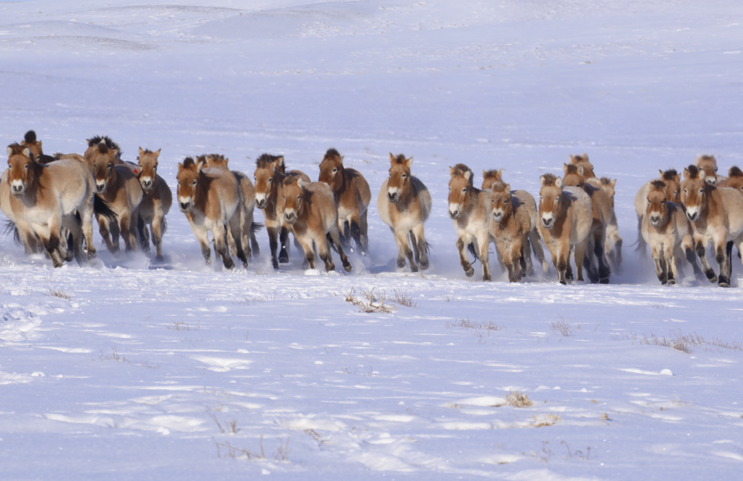 目前,我国普氏野马的种群数量已突破900匹,野外种群达到300多匹。杨维康说:“现在仅有约一半的野马会在冬季进入围栏,另一半已无需人工补给水和草,能够独立越冬,实现了真正意义上的野放。”